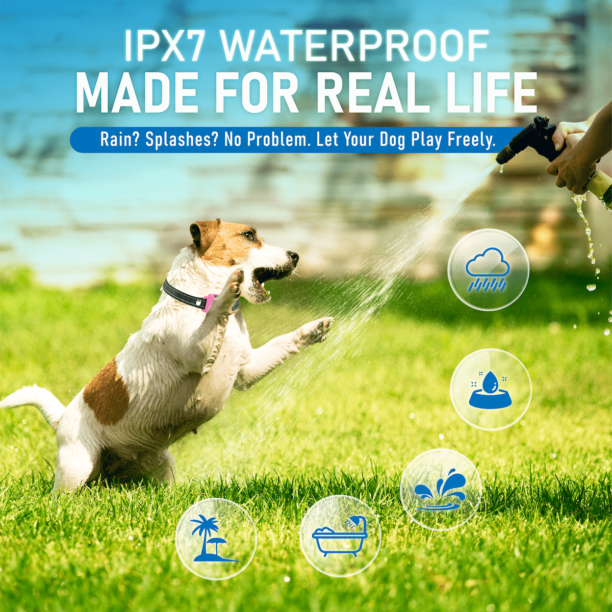 Don’t let weather stop your training. With an IP67 waterproof rating, your dog can play in the rain, splash in puddles, or roll in the mud — no worries.