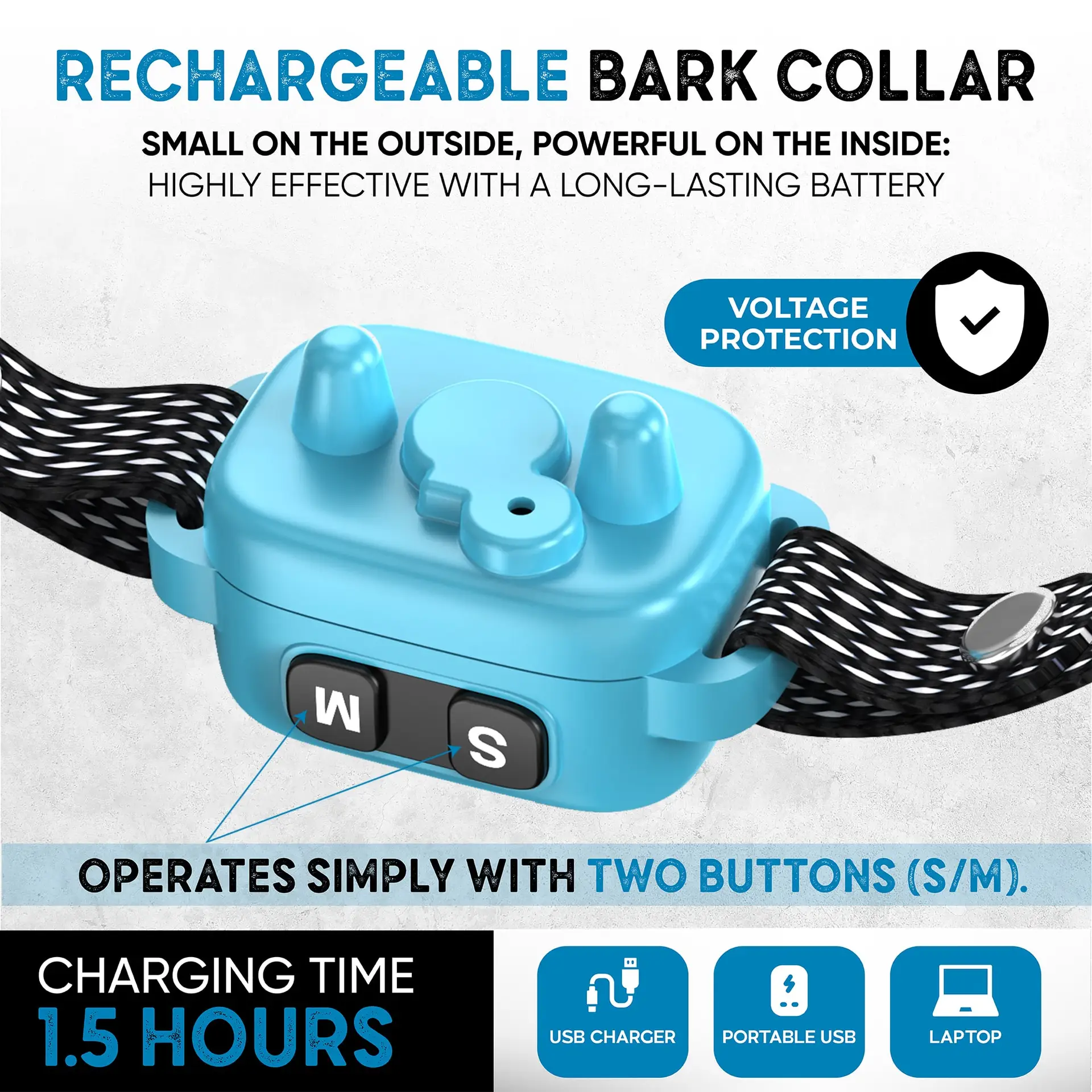 Train without pain. This anti-bark collar uses sound and vibration only — no shocks, ever. Choose from 3 humane training modes: