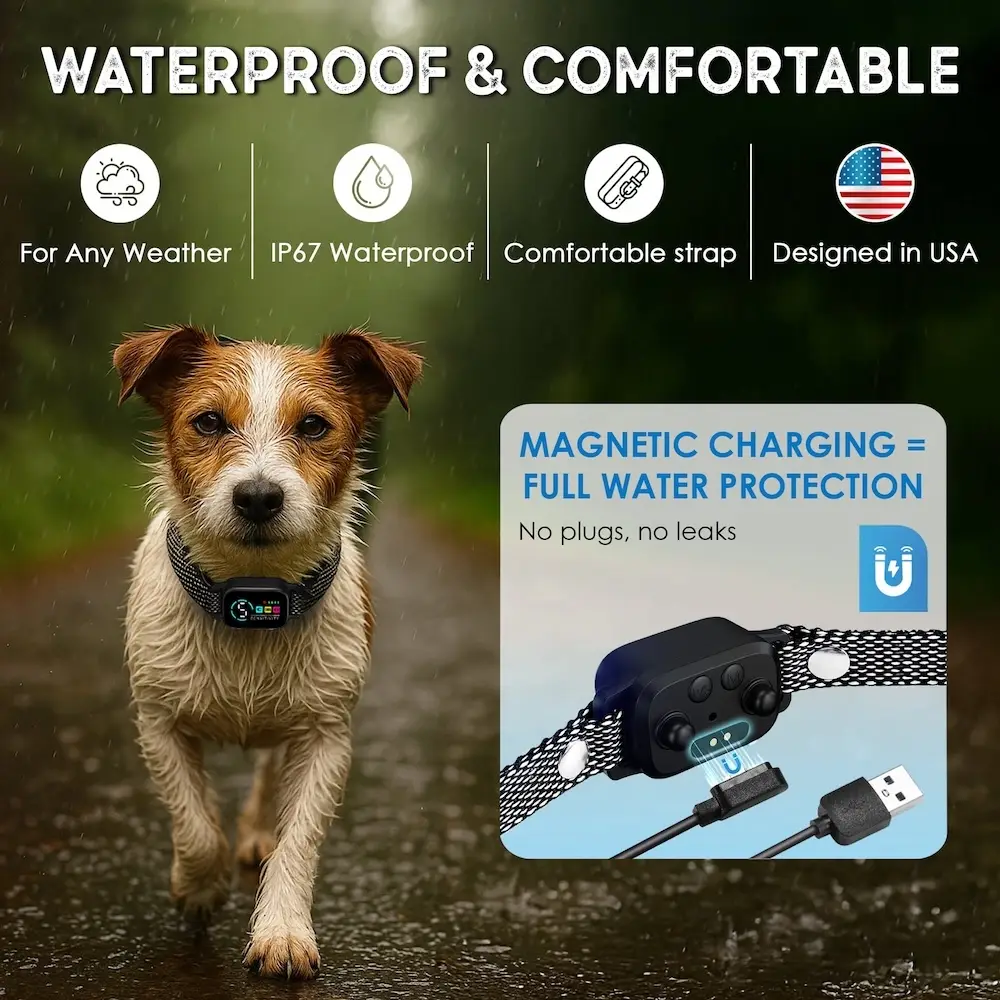No shock — only gentle sound and vibration. Designed to stop barking safely and build positive habits.